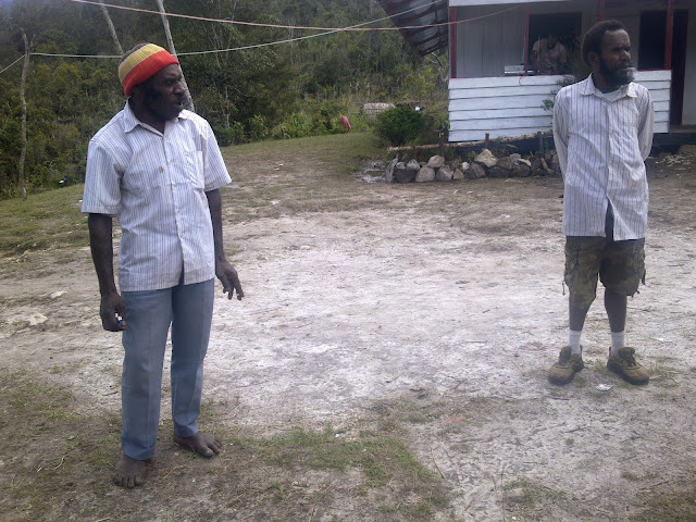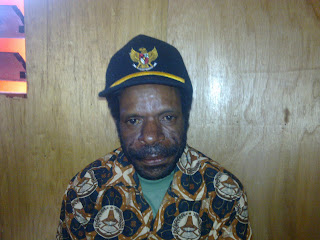 sedang berdiri didepan kantor Distrik Abenaho Kabupaten Yalimo
